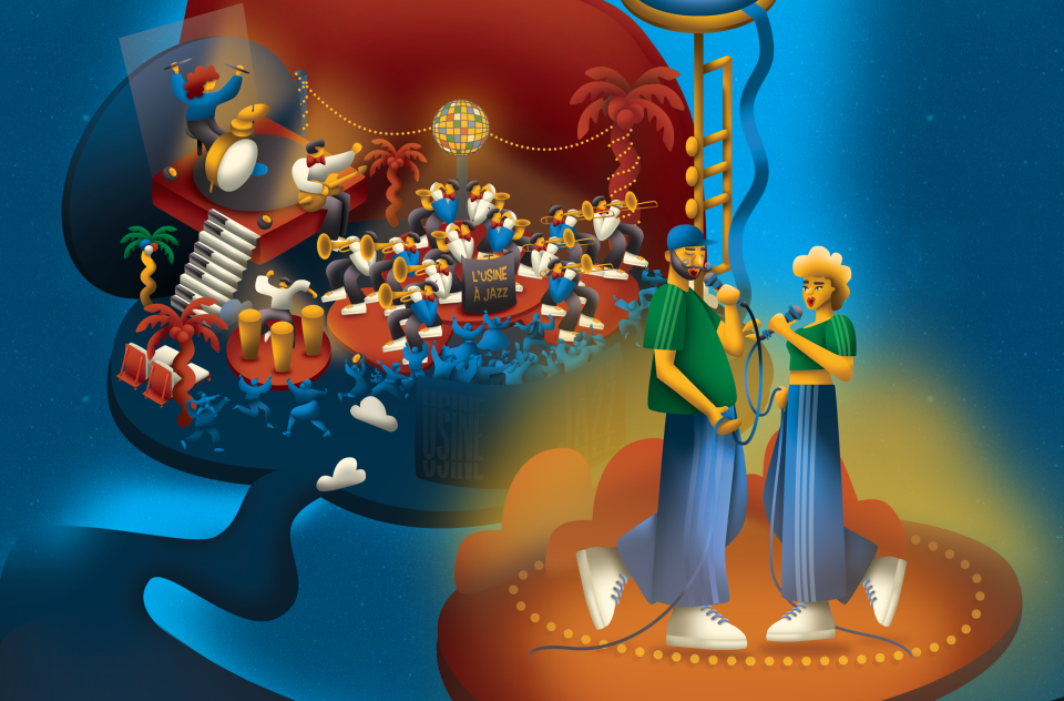 L’Usine à Jazz has a stimulating policy of renewing its leadership for each new project, so as to never stop reinventing itself. Its previous shows have filled venues: Charles B Funk, created by Karim Maurice (2022), Black Legends (2019) and Live in the City – Tribute to Stevie Wonder (2016) conducted by Pascal Perrier, Sotto Voce (2013) written and conducted by Vincent Stephan, not to mention its tributes to Duke Ellington, Pat Metheny, Astor Piazzolla, and the Brecker Brothers conducted by Fabrice Bon, and his forays into contemporary music, with Lindberg's Requiem for big band and choir (2010), and into hip hop and nu jazz with Electro Deluxe (2010).