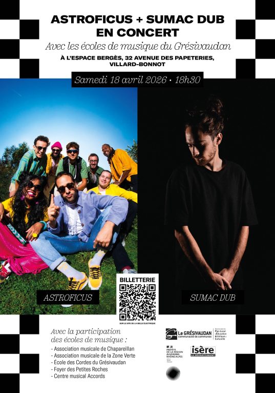 Deux groupes grenoblois (Astroficus et Sumac Dub) ont été invités à partager leur univers musical avec près d’une cinquantaine d’élèves du territoire. Ensemble, ils ont travaillé à la réinterprétation de plusieurs de leurs morceaux… avec, à la clé, un concert augmenté hors du commun !